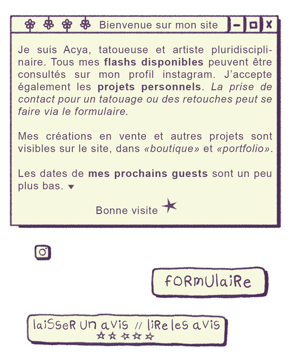 06. OÙ VOIR TES TRAVAUX CICATRISÉS ? TES FLASHS DISPONIBLES ? Je répertorie tout ça dans mes story « à la une » sur ma page instagram