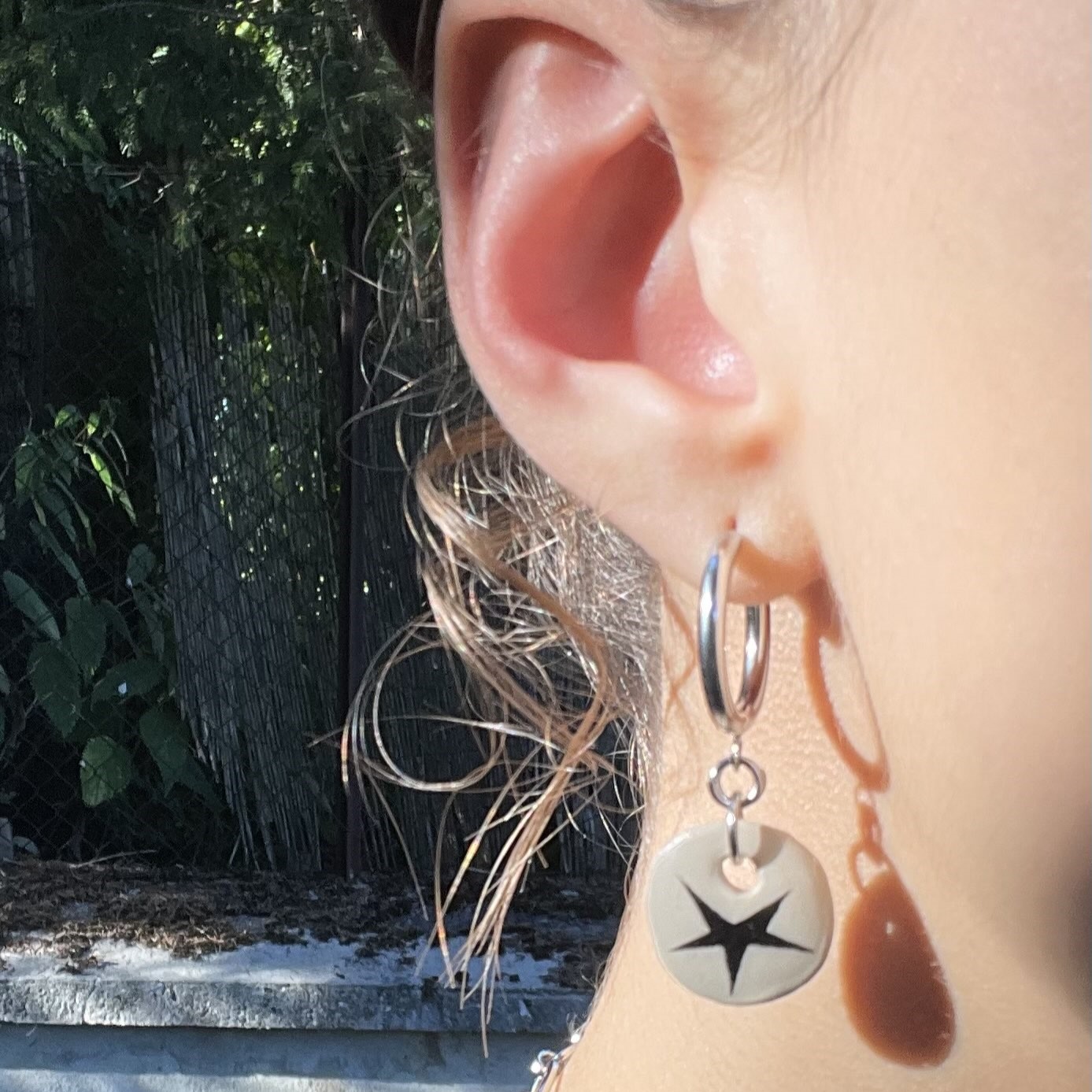 ✤ paire boucles d’oreilles ✤ Acier inoxydable – Pendentif en pâte FIMO vernie à l’époxy, diamètre environ 2 cm