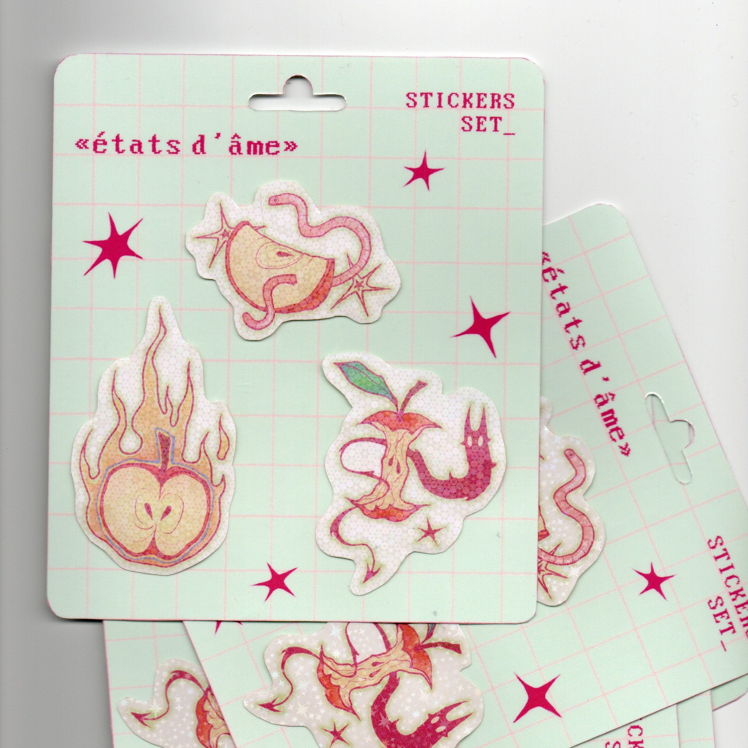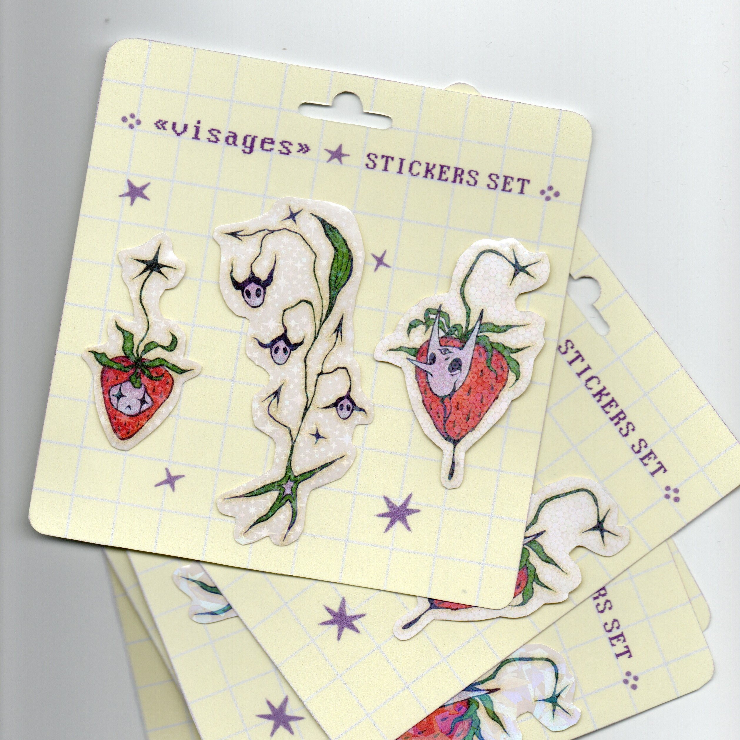 ✤ set de 3 stickers holographiques ✤ Packaging 14 x 16 cm – Stickers imprimés, plastifiés et découpés maison